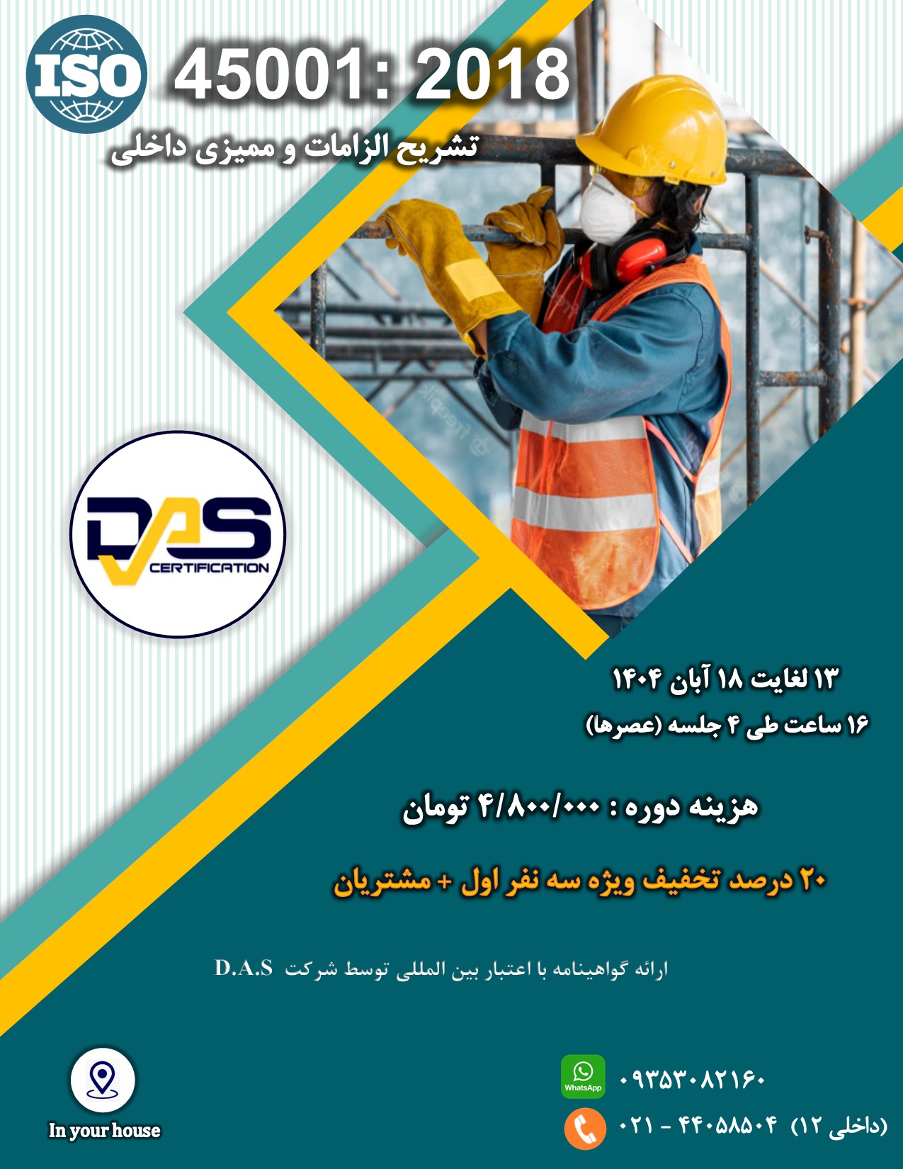 دوره آنلاین تشریح الزامات و ممیزی داخلی سیستم مدیریت ایمنی و بهداشت شغلی ISO 45001:2018